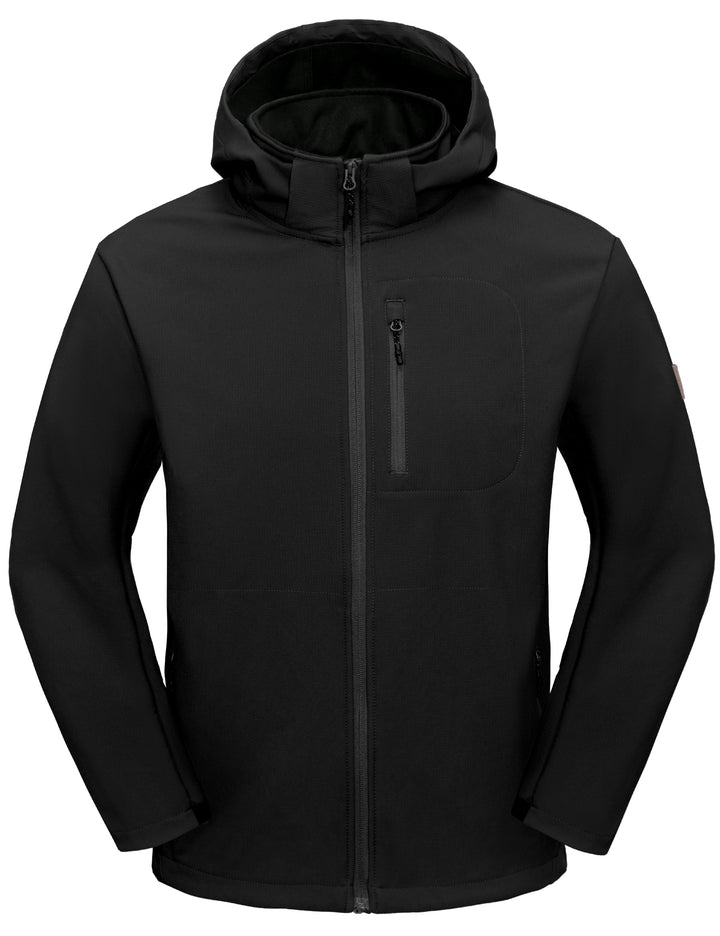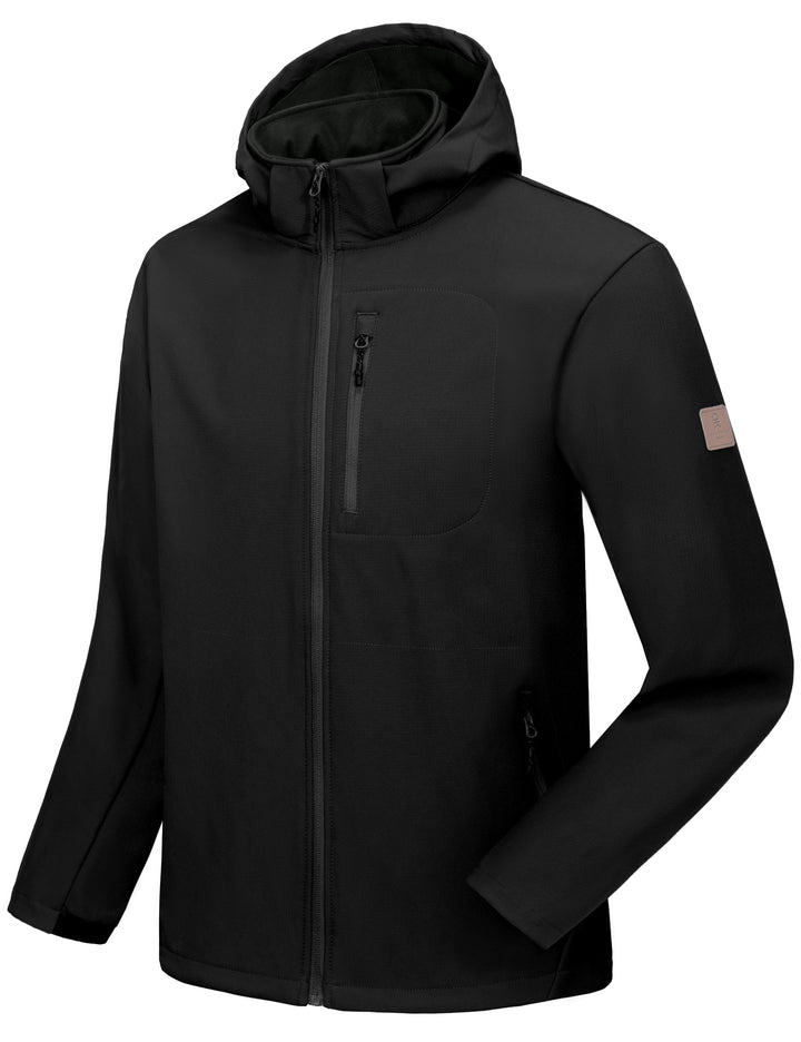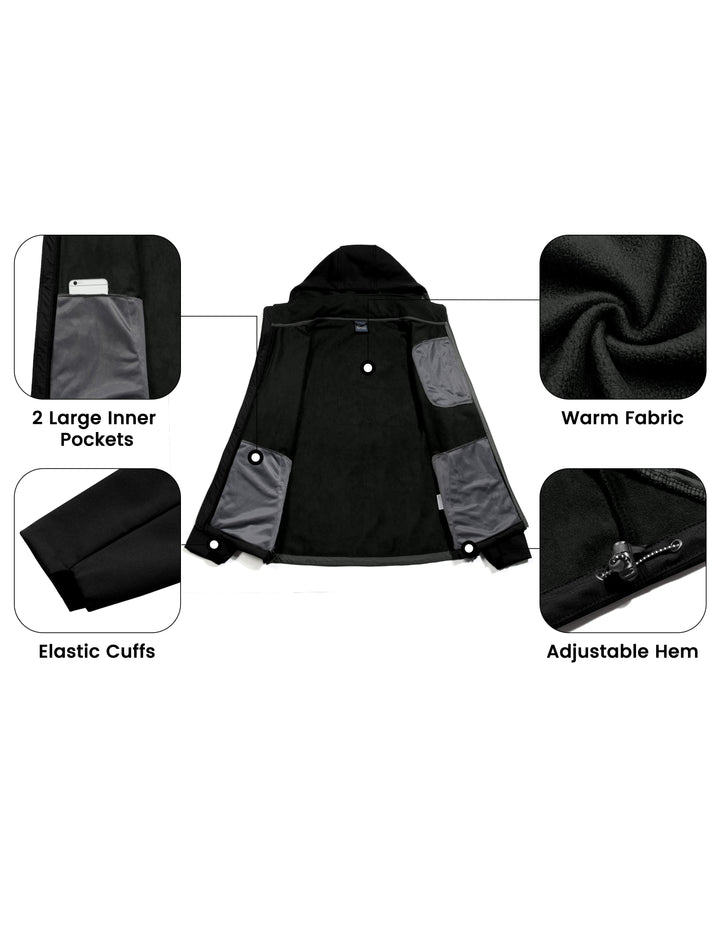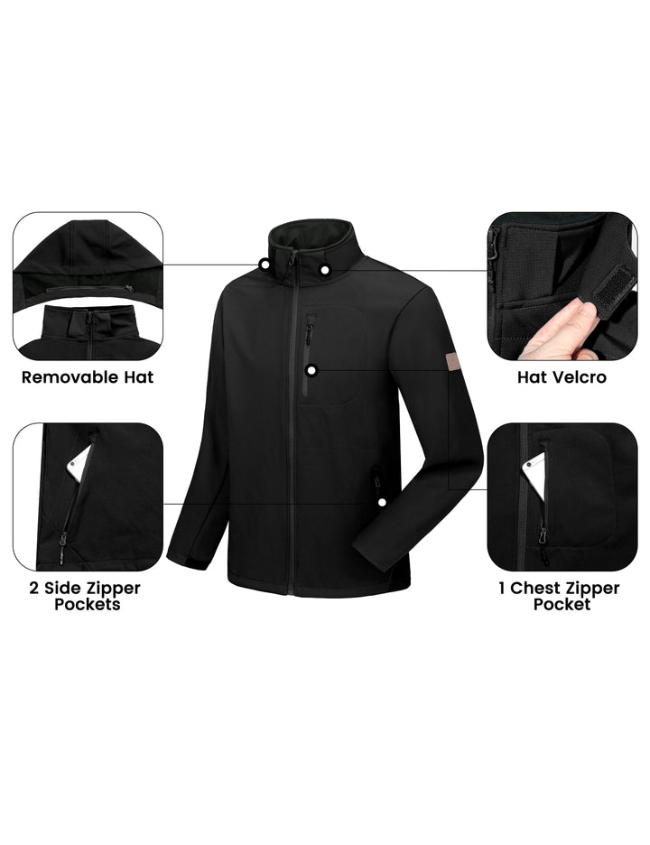 Men's Fleece Lined Softshell Jacket Water Repellent Coat with Removable Hood for Ski