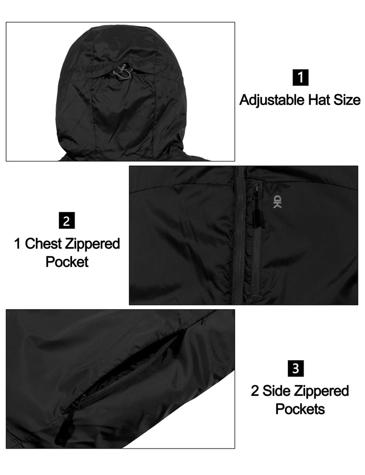 - ADJUSTABLE HAT SIZE - The men windproof jacket adopting a hooded design provides protection and locks warmth at the neck, and the elastic rope at the back of the hat can be freely adjusted for tightness.