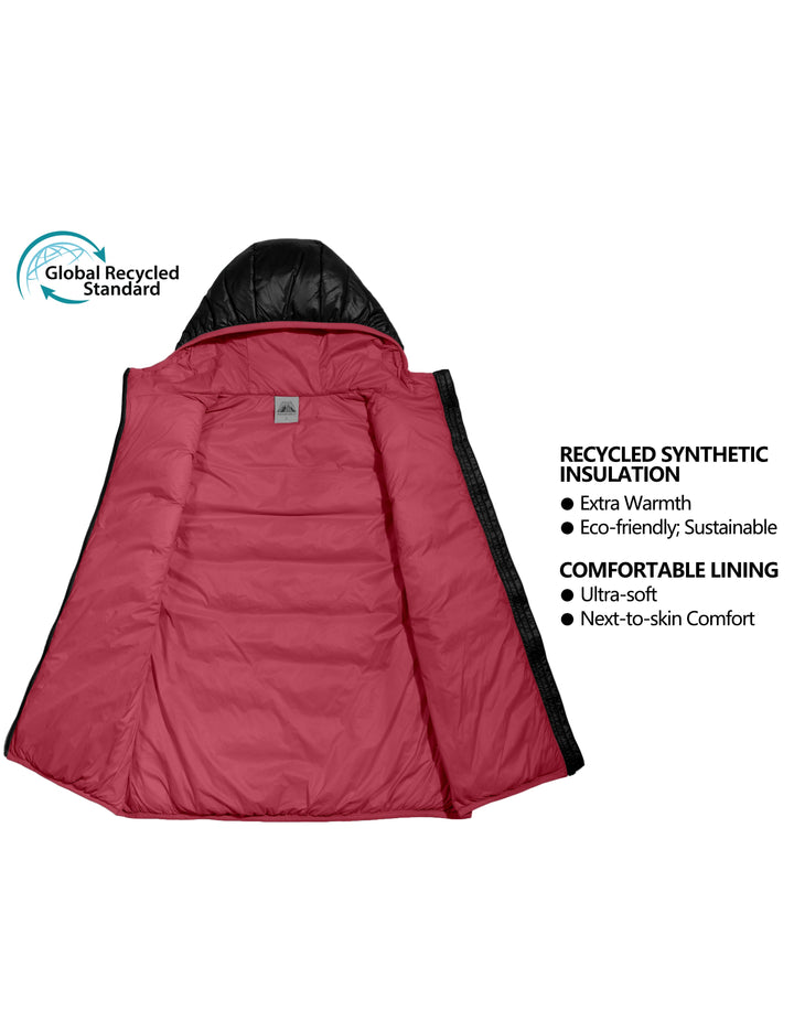 The Women's Water-Resistant Hiking Puffer Vest with Hood is the ultimate blend of durability, sustainability, and comfort. Perfect for tackling winter adventures or staying cozy in chilly conditions, this versatile vest keeps you warm, dry, and protected.