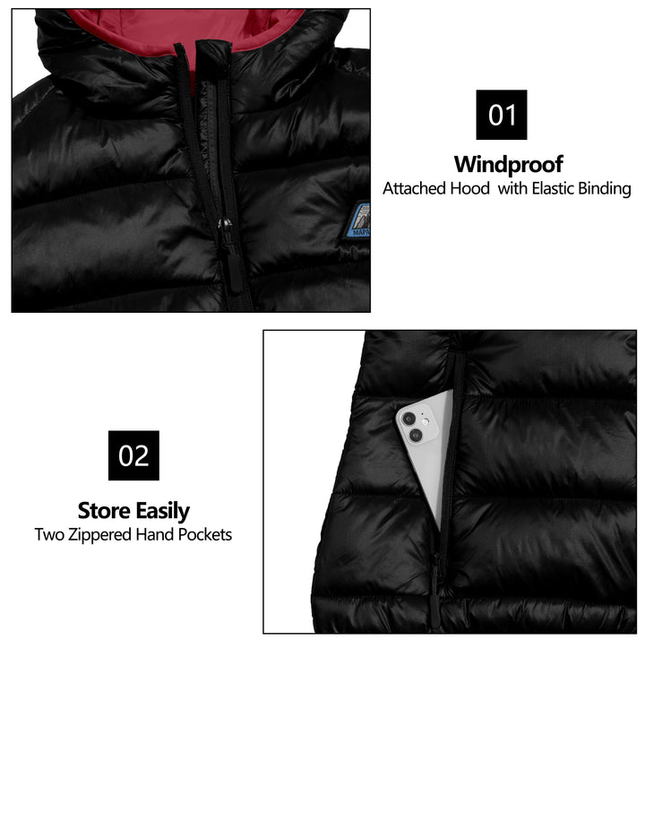 - Windproof Design - Features a hood with elastic binding for a secure fit, zippered hand pockets to shield your hands from the cold, and elastic armhole bindings to lock in warmth.